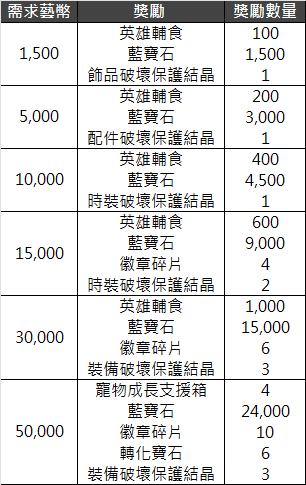 儲值指定額度的藝幣時,可獲得遊戲內所需的道具。
