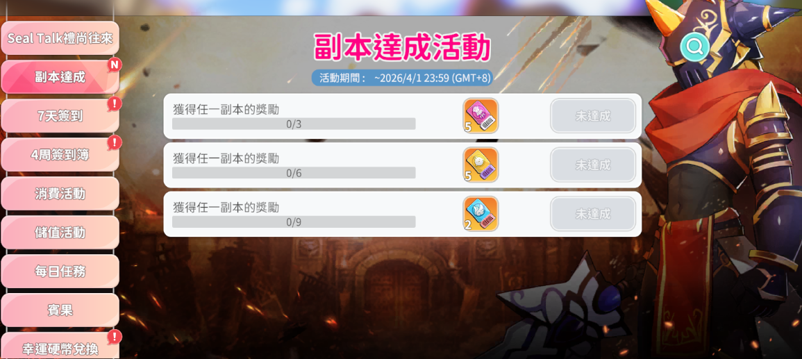 3. 活動獎勵每日初始化,需於每天0點後重登遊戲,再進行攻略副本,才會增加副本次數。