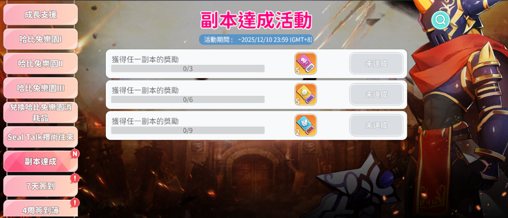 3. 活動獎勵每日初始化,需於每天0點後重登遊戲,再進行攻略副本,才會增加副本次數。