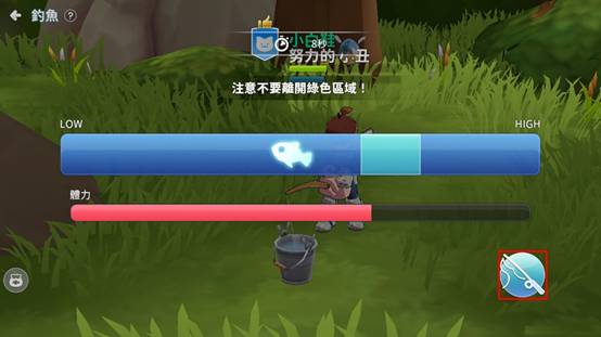 ④ 在限制時間內體力沒有變0就可以成功釣到魚。