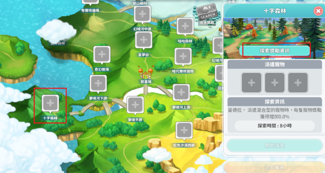 ▶寵物派遣新增十字森林區域。