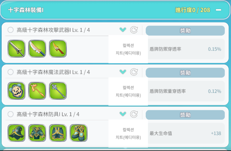 ▶由十字森林獲得的裝備,可收藏於【收藏-十字森林裝備I】之中。