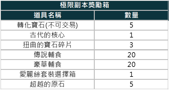 ※極限副本獎勵箱開啟後將隨機獲得其中一項。