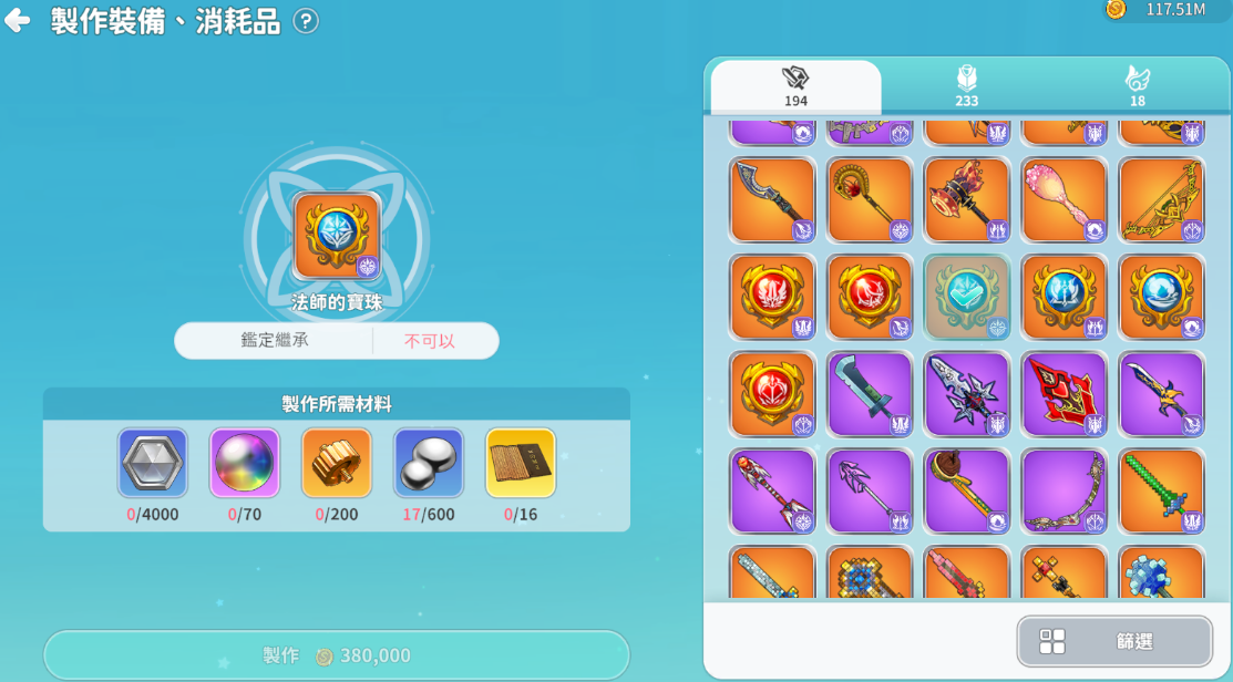 ▶新的英雄/傳說階級裝備可透過獅子城NPC製作匠人-史密斯製作。