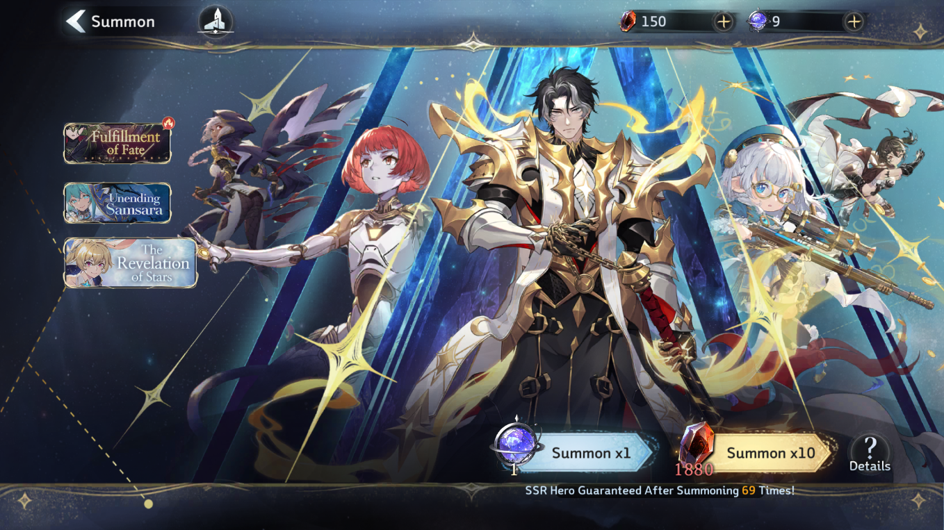 1) Summon: The Revelation of Star summon allows you to summon any hero without special event rates. Summoning can be performed by using 188 Blackstone Crystals or 1 Crystal Spheres of Revelation. Additionally, you can summon 10 heroes at once by using 1880 Blackstone Crystals or 10 Crystal Spheres of Revelation.