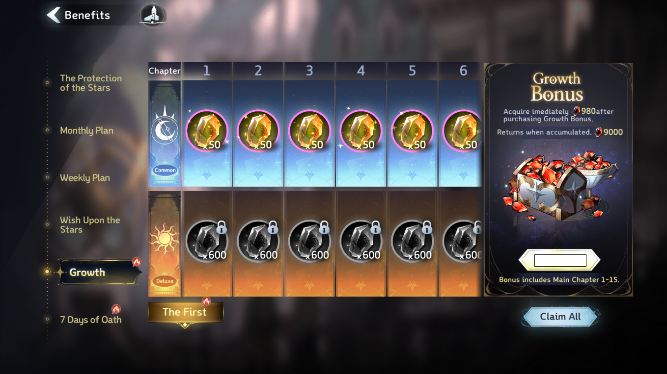 You can obtain 50 Blackstone Crystals for each chapter you clear. If you purchase the ‘Growth Bonus Pack,’ you can receive 600 additional Blackstone Crystals.