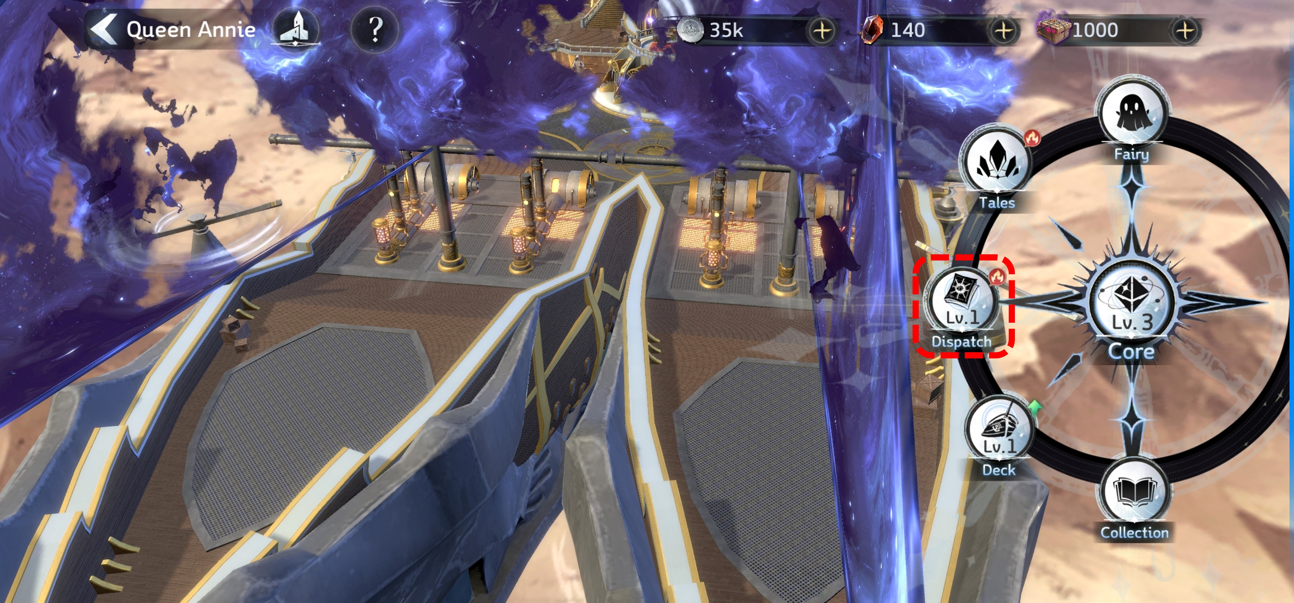 Note: The dispatch level cannot exceed the core level of Queen Annie.