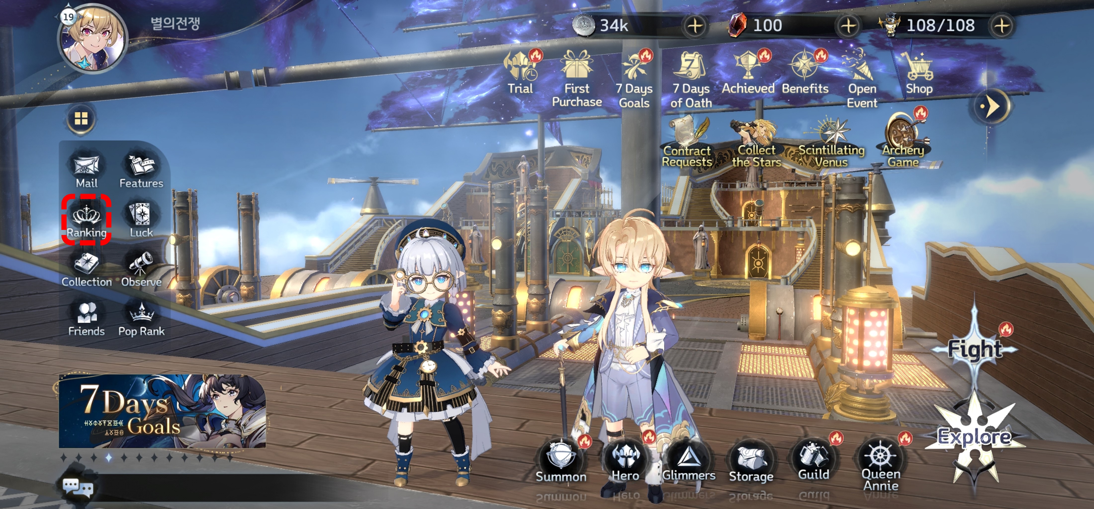 The ranking system allows you to check the server rankings of users' stage progress, hero possession quantities, and more.