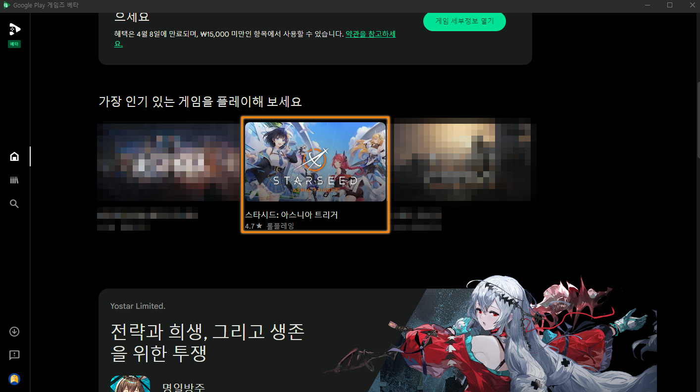 4. 설치 완료된 Google Play Games를 실행하신 다음