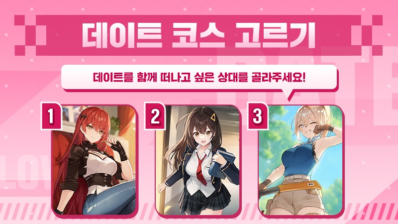 - 이벤트 기간 내 앰브로시아, 마나, 페렐이 제안한 데이트 코스 중 1곳을 선택하여 공지 내 댓글로 작성 시 참여 완료!