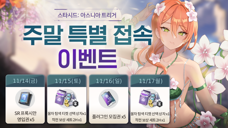 이 외에도 다양한 이벤트가 준비되어 있는 스타시드: 아스니아 트리거에서 즐거운 시간 보내세요.