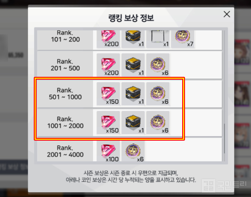 ▲ Rank. 500~2,000의 보상이 동일하니 이를 목표로 잡자 (사진: 국민트리 촬영)