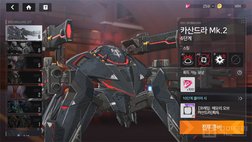 특수전 – 보스 챌린지는 지금까지 공략했던 메인 모험 보스의 다음 단계를 공략해 추가 보상을 획득하는 콘텐츠다. 단계에 따라 보스가 더 강력해지며, 보상으로 스타비트와 SSR 프록시안 영입권, 프로필 프레임 등을 획득할 수 있다. 해당 콘텐츠 역시 매일 기본 횟수 없이 계속 반복해 도전할 수 있으니 메인 모험이 막힐 때 플레이하자.