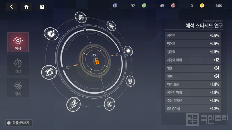 ▲ 액티베이션의 모든 분야를 최대 레벨로 업그레이드하자 (사진: 국민트리 촬영)