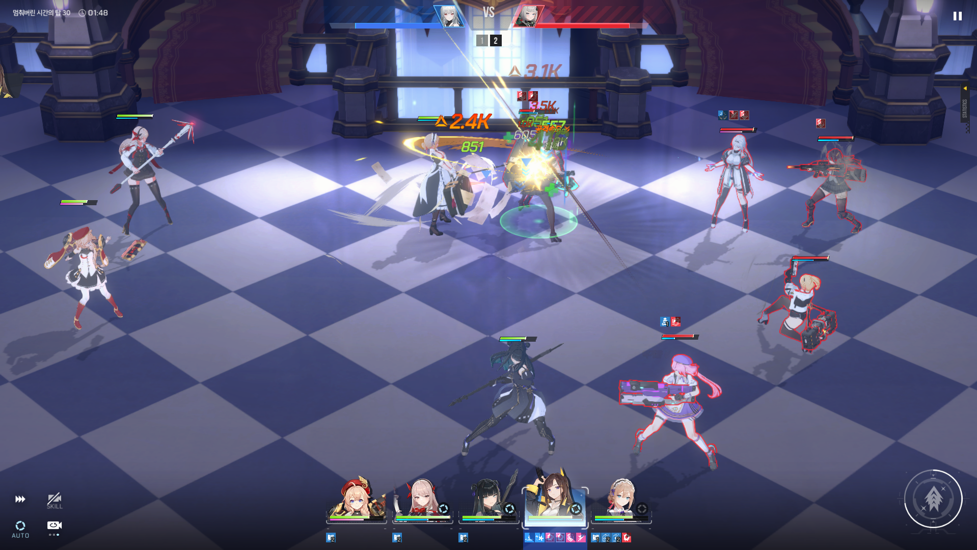 13섹터부터 팀을 두 개 사용하는 스테이지에서 첫 번째 팀은 스킬 자동 설정에 문제가 없는데