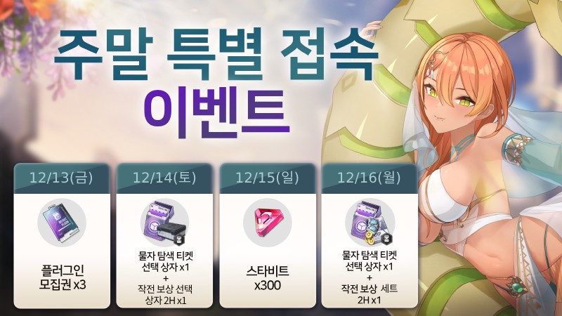 | 12.13(금) 9:00 ~ 12.14(토) 8:59 | 플러그인 모집권 x 3 |