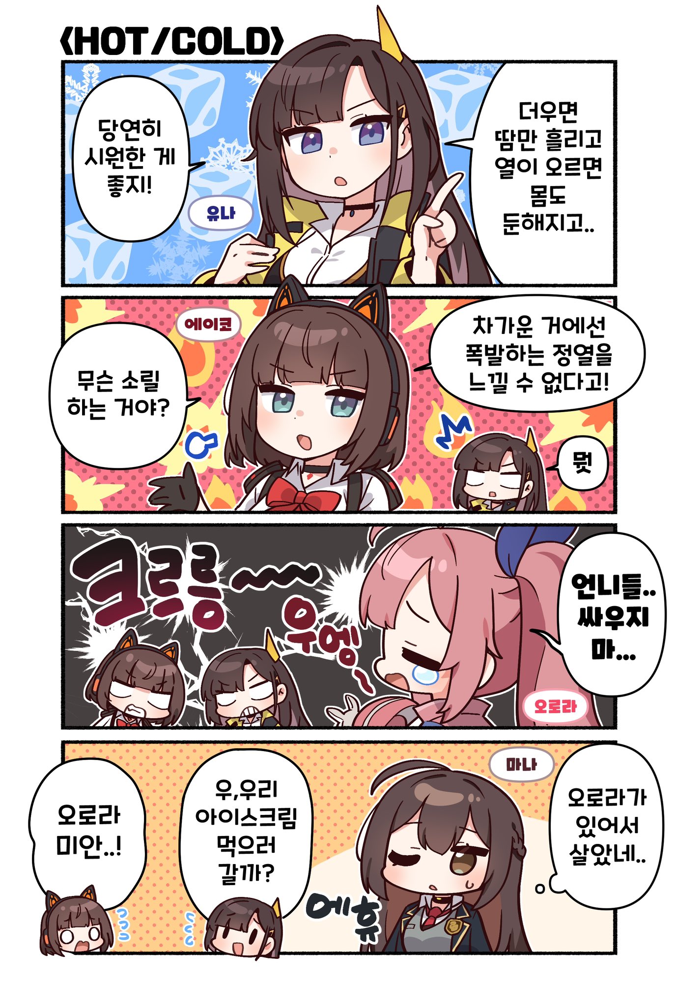 ♥순수한 불순물님과 함께하는 4컷 만화에서 유나와 에이코가