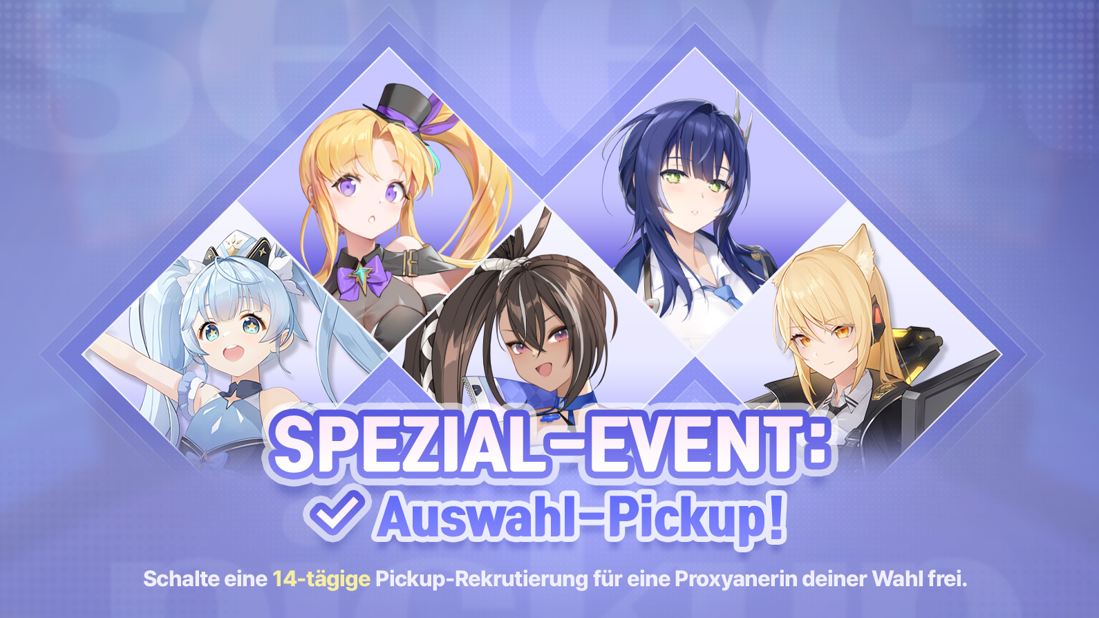 Nimm am [Spezial-Event: Auswahl-Pickup] teil! Wähle deine gewünschte Pickup-Proxyanerin und rekrutiere sie mit einer höheren Wahrscheinlichkeit!