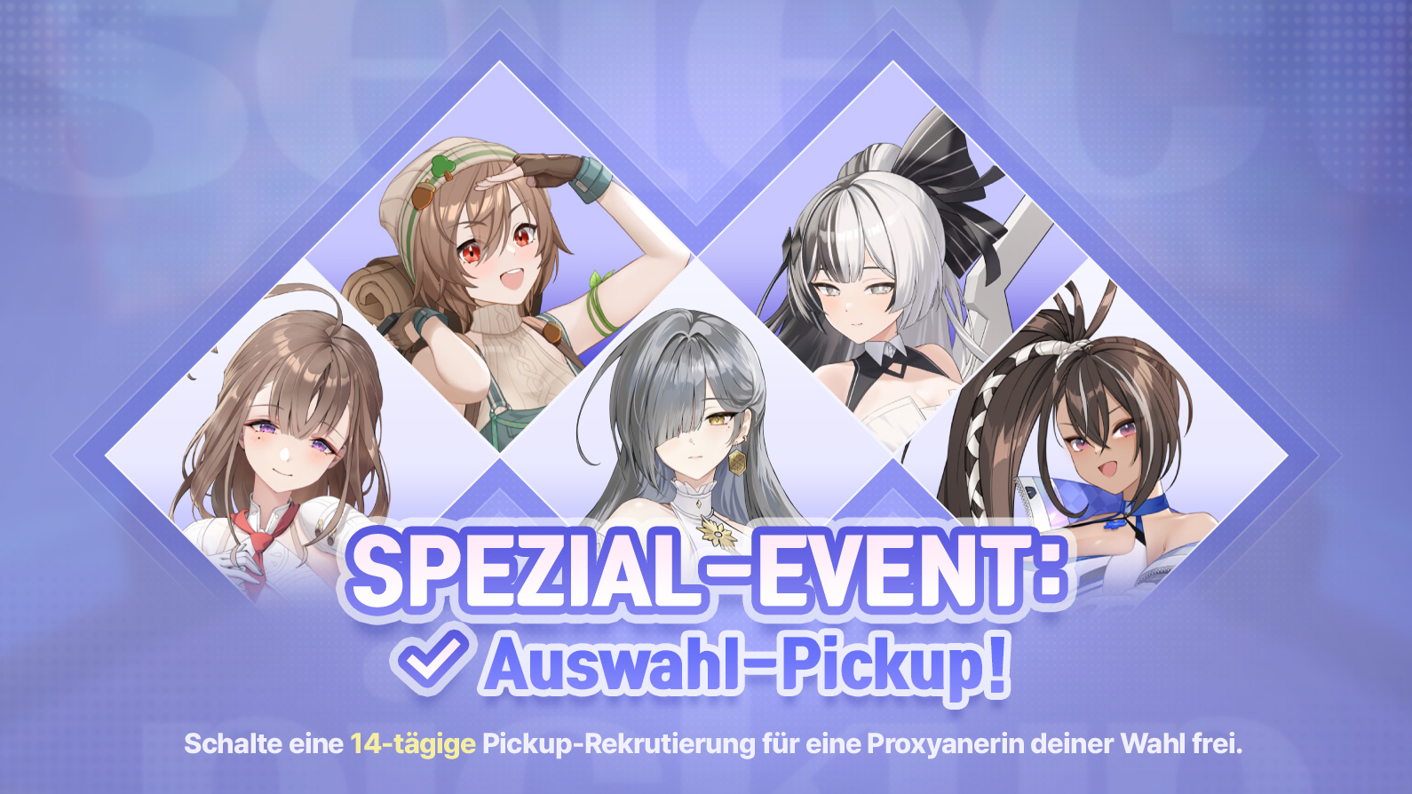 * Während des Events kannst du 1 Proxyanerin für die Auswahl-Pickup-Rekrutierung auswählen. Nach dem Ende des Event-Zeitraums kann keine Auswahl mehr getroffen werden.