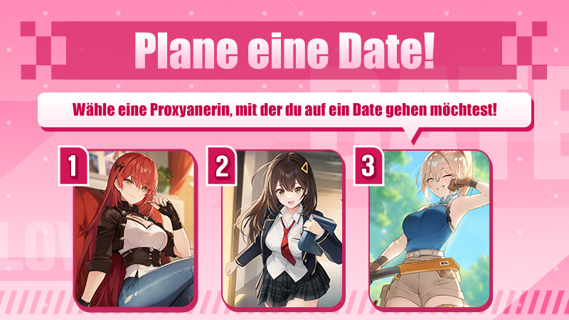 - Belohnung für das Erreichen von 500 Kommentaren: Luxuriöses Geschenk (UR Zuneigungs-Item) x5, SR Proxyaner-Ticket x5