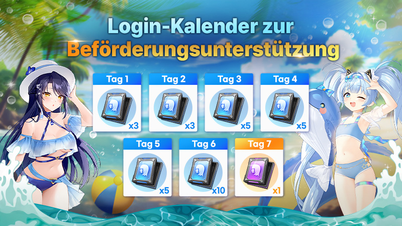 * Der "7-Tage-Login-Kalender zur Beförderungsunterstützung" wird ab deinem ersten Login 10 Tage lang aktiv sein.