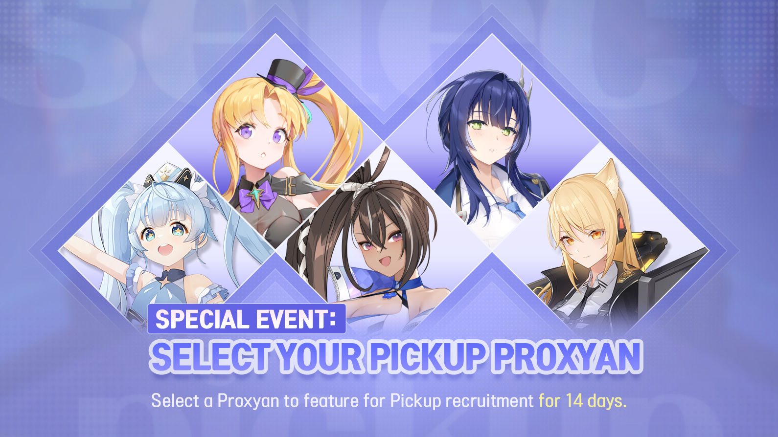 Join the [Special Event: Select Your Pickup Proxyan]! Choose your desired Proxyan for Pickup recruitment and enjoy boosted rates!