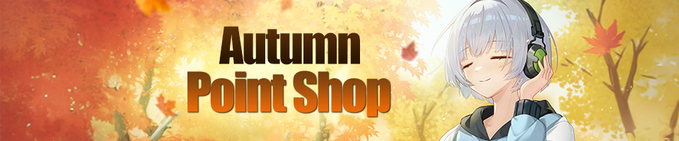 We're excited to announce the Autumn Point Shop Event! Purchase eligible packs to earn the event currency, Maple Leaves, and use them to grab a variety of items in the [Autumn Point Shop].