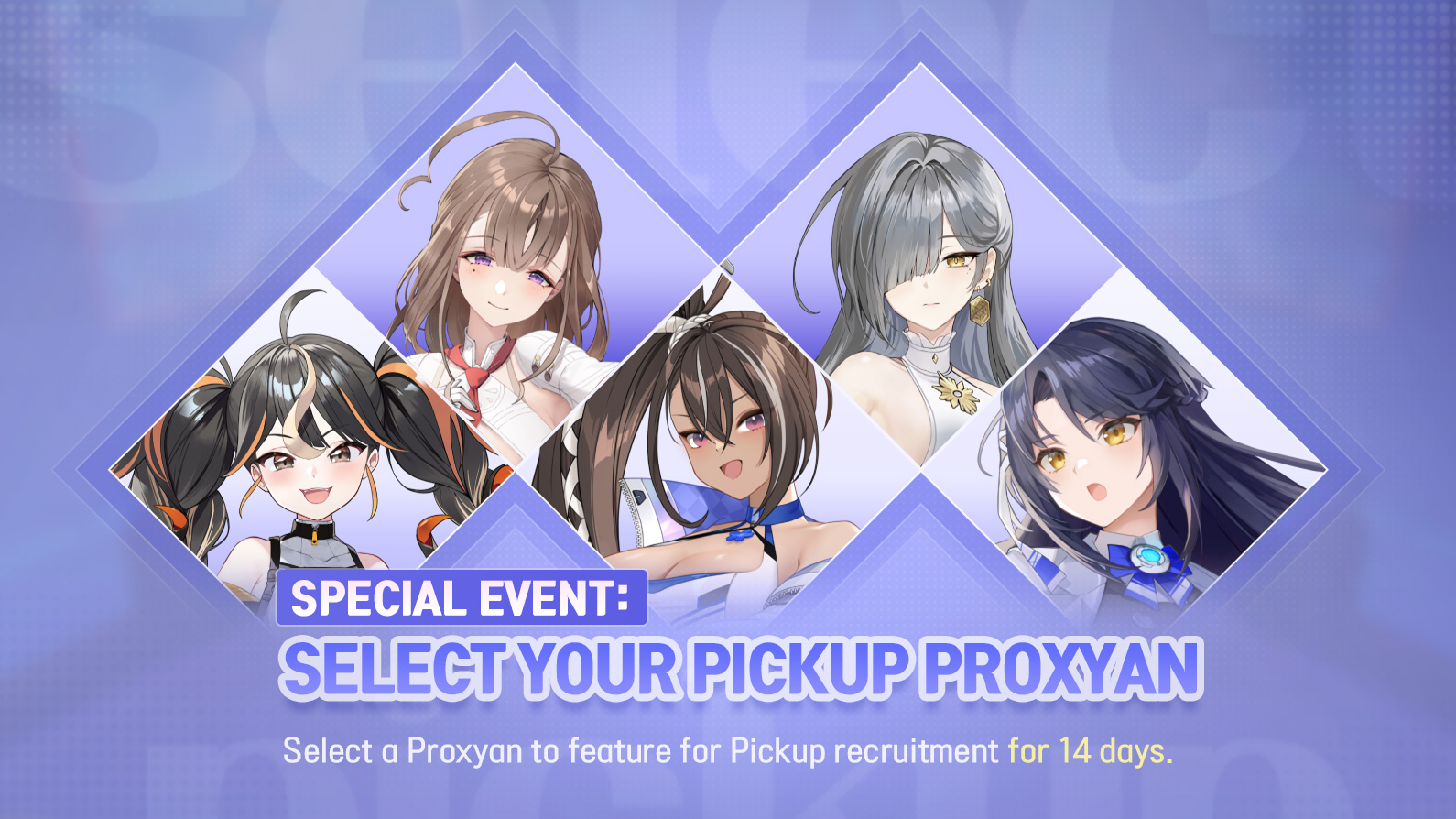 Join the [Special Event: Select Your Pickup Proxyan]! Choose your desired Proxyan for Pickup recruitment and enjoy boosted rates!