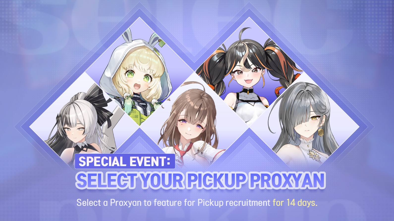 Join the [Special Event: Select Your Pickup Proxyan]! Choose your desired Proxyan for Pickup recruitment and enjoy boosted rates!
