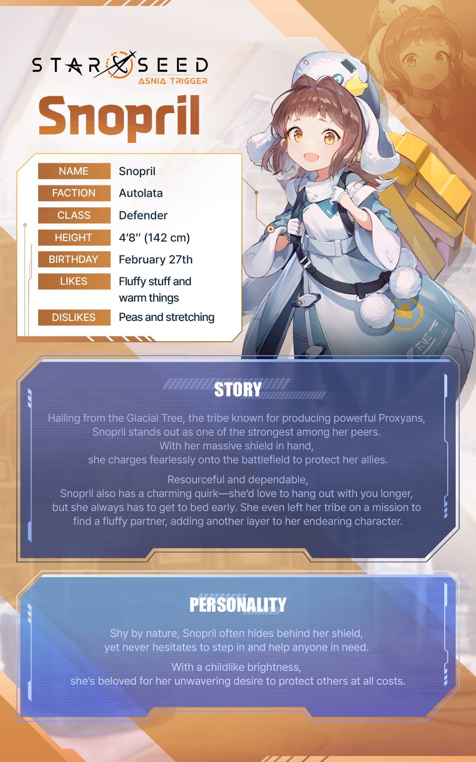 Hailing from the Glacial Tree, the tribe known for producing powerful Proxyans, Snopril stands out as one of the strongest among her peers.