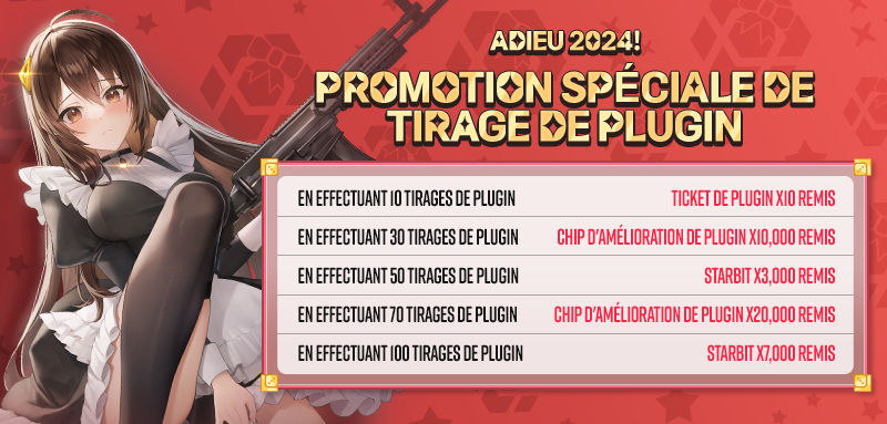 Du 24/12 à 01:00 au 01/01 à 01:59 (CET), les récompenses de l'événement seront envoyées dans votre messagerie en fonction du nombre total de tirages de Plugins que vous aurez effectués pendant cette période.