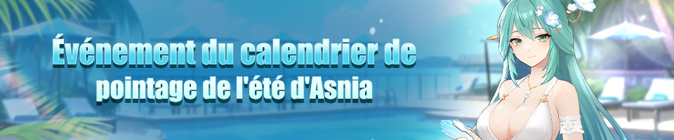 * L'Événement de calendrier de pointage d'été d'Asnia sera disponible pendant 10 jours à compter de votre première connexion.