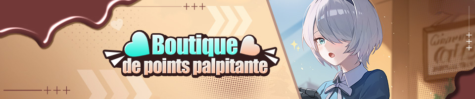Pendant la période de l’événement, l’achat de certains packs vous permettra d'obtenir une devise d'événement que vous pourrez échanger dans la [Boutique de points palpitante] contre toutes sortes d'objets en fonction de la quantité possédée.