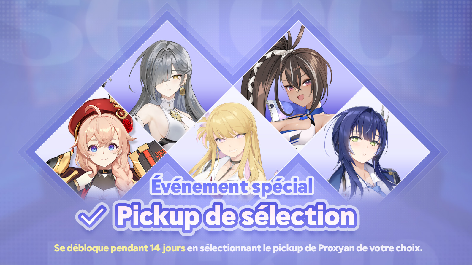 - Pendant la période de l'événement, sélectionnez 1 Proxyan de votre choix sur les 5 proposés et profitez de son pickup exclusif pendant 14 jours.