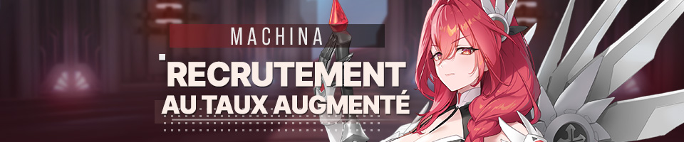 - Pendant la durée de l'événement, il est possible de recruter Machina avec un taux augmenté et elle peut être également obtenue depuis la liste de souhaits des noyaux supérieurs du recrutement normal.