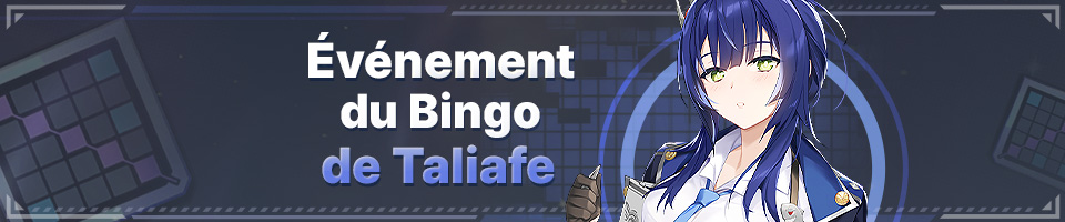 Profitez de l'événement du Bingo de Taliafe qui vous permettra d'obtenir plein de récompenses de ligne de bingo et de récompenses cumulées de bingo.