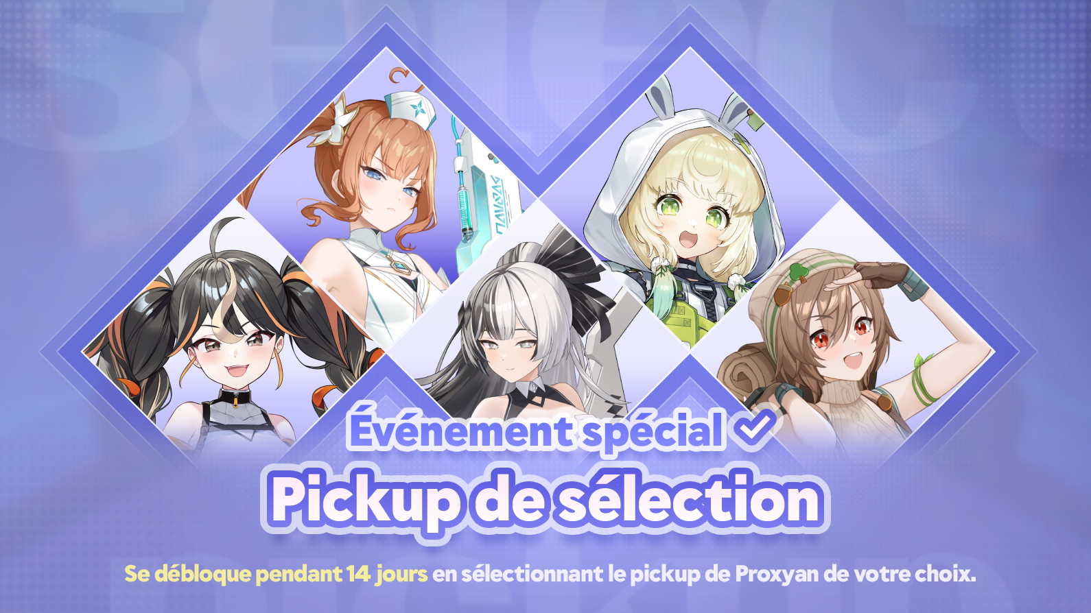 - Pendant la période de l'événement, sélectionnez 1 Proxyan de votre choix sur les 5 proposés et profitez de son pickup exclusif pendant 14 jours.