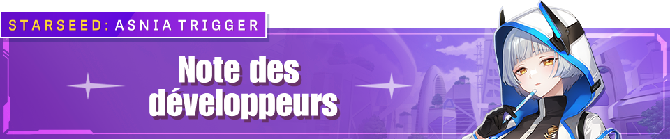 Bien que les nouvelles mises à jour soient temporairement interrompues, les événements et le service resteront inchangés. Vous pourrez donc continuer à jouer à Starseed: Asnia Trigger, et les mises à jour reprendront immédiatement une fois l’intégration terminée.