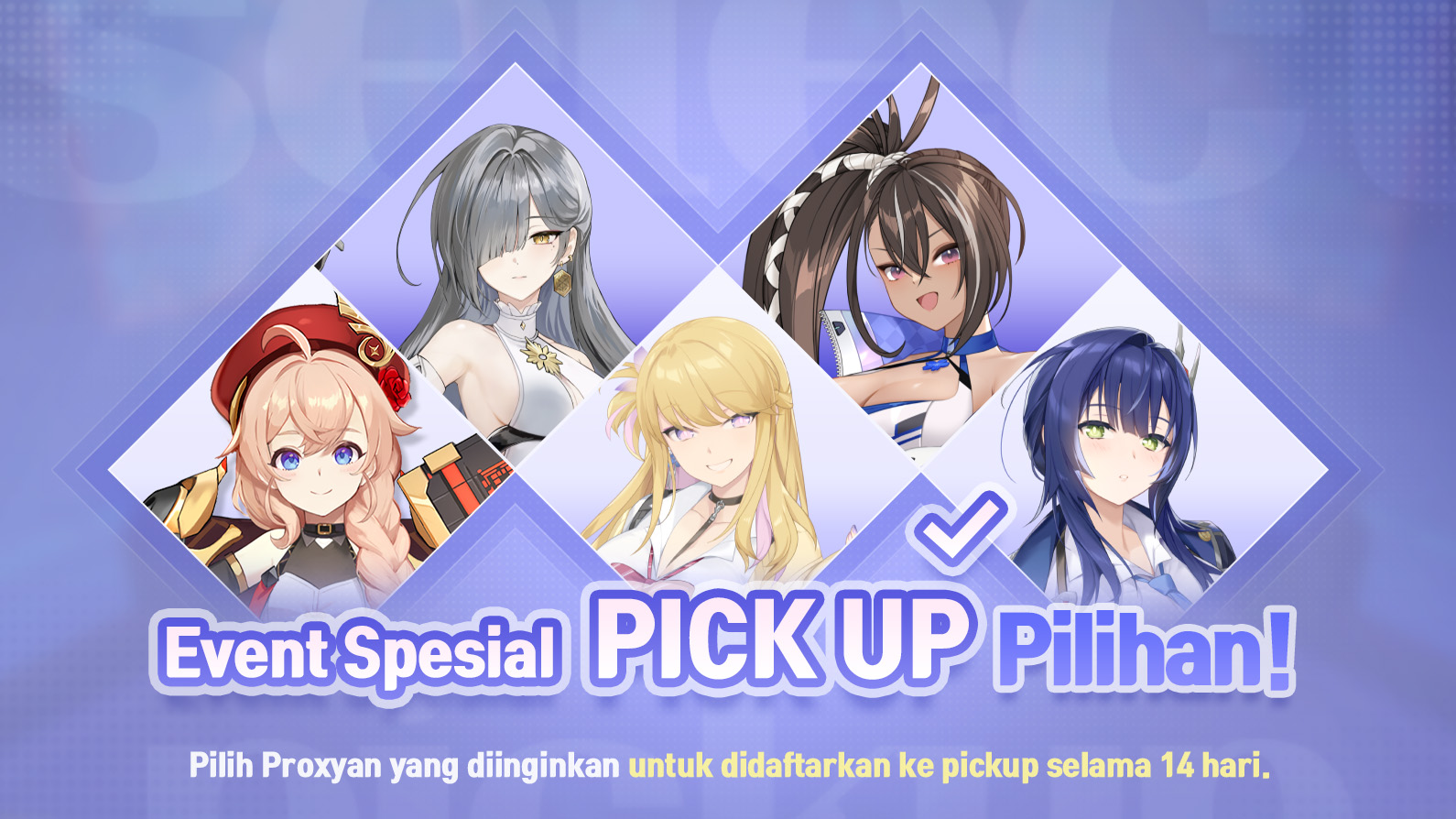 Bergabunglah dalam [Event Spesial: Pilih Proxyan Pickup-mu]! Pilih Proxyan yang kamu inginkan untuk Rekrut Pickup dan dapatkan peluang rekrut yang lebih tinggi!