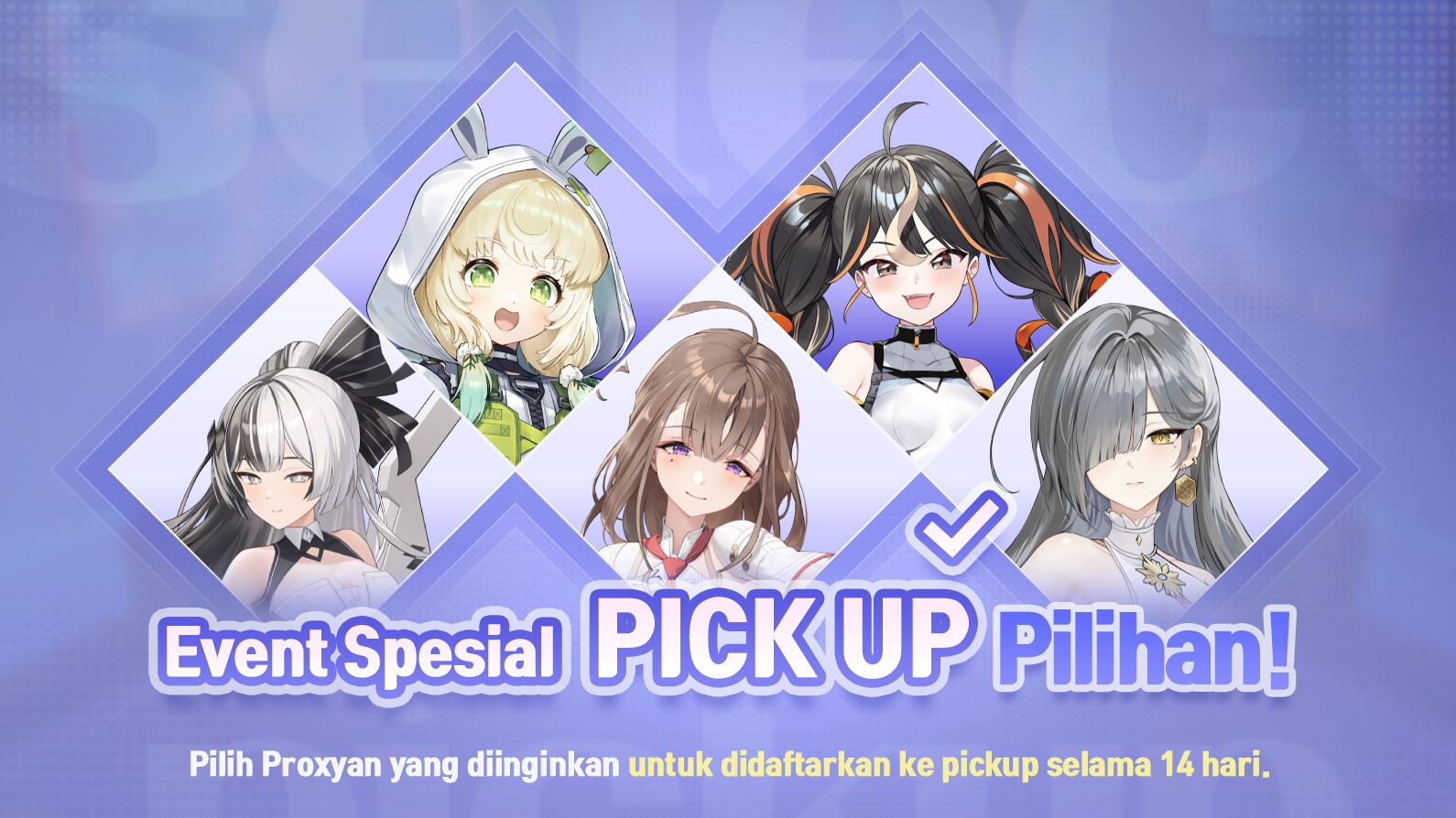 Bergabunglah dalam [Event Spesial: Pilih Proxyan Pickup-mu]! Pilih Proxyan yang kamu inginkan untuk Rekrut Pickup dan dapatkan peluang rekrut yang lebih tinggi!