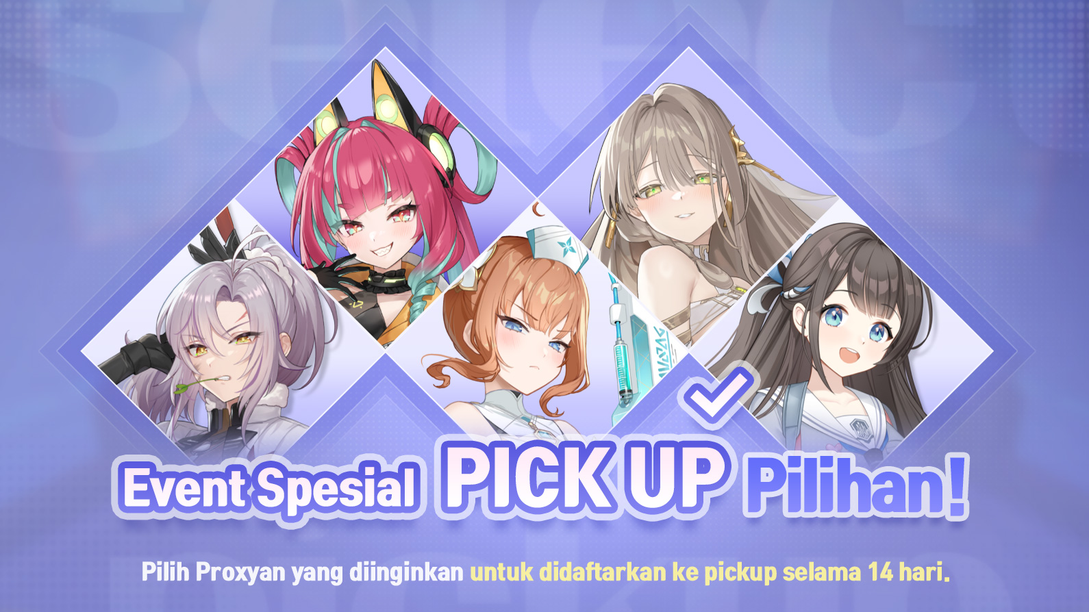 Bergabunglah dalam [Event Spesial: Pilih Proxyan Pickup-mu]! Pilih Proxyan yang kamu inginkan untuk Rekrut Pickup dan dapatkan peluang rekrut yang lebih tinggi!