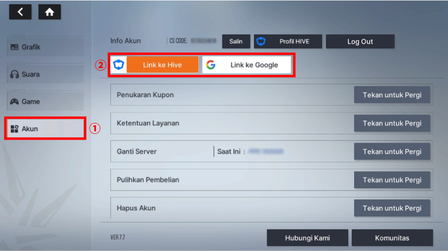 - Penautan akun dapat dilakukan di dalam game melalui '三 (Menu) > Pengaturan > Akun'.