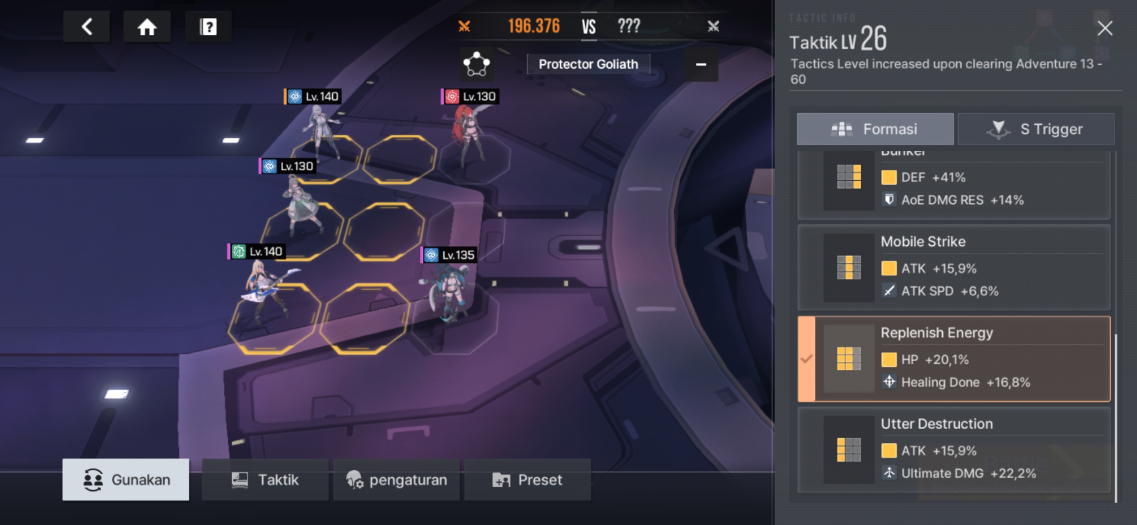 Formasi ini meningkatkan Healing Done sebesar +16.8%, memungkinkan Hallona untuk memaksimalkan kemampuan healing-nya. Ini sangat penting untuk mempertahankan survivabilitas tim, terutama selama pertempuran panjang atau melawan bos dalam misi cerita.