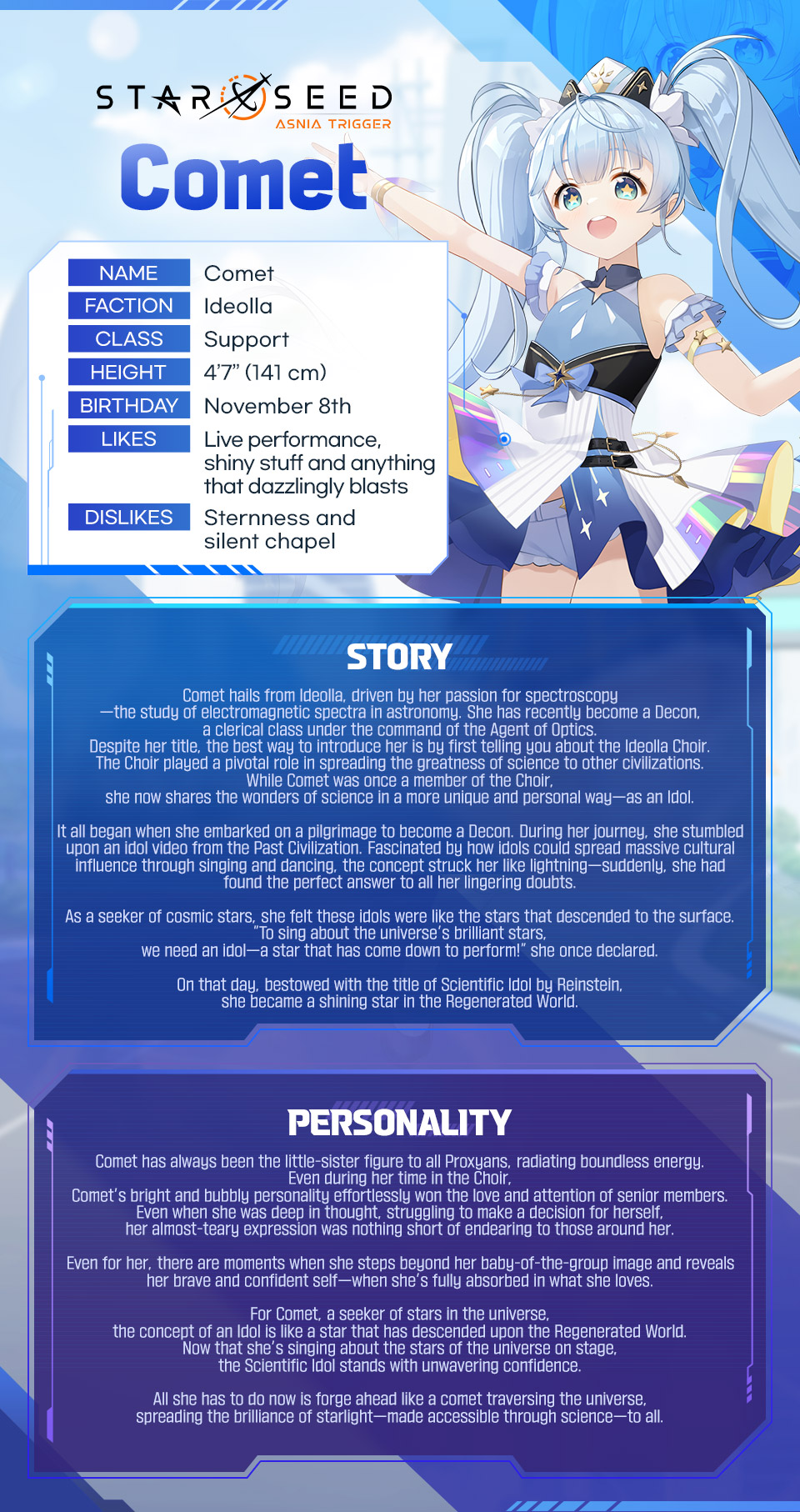 After learning about idol culture from the Past Civilization, Comet decided to become an idol star to spread the wonders of science. ๐คโจ