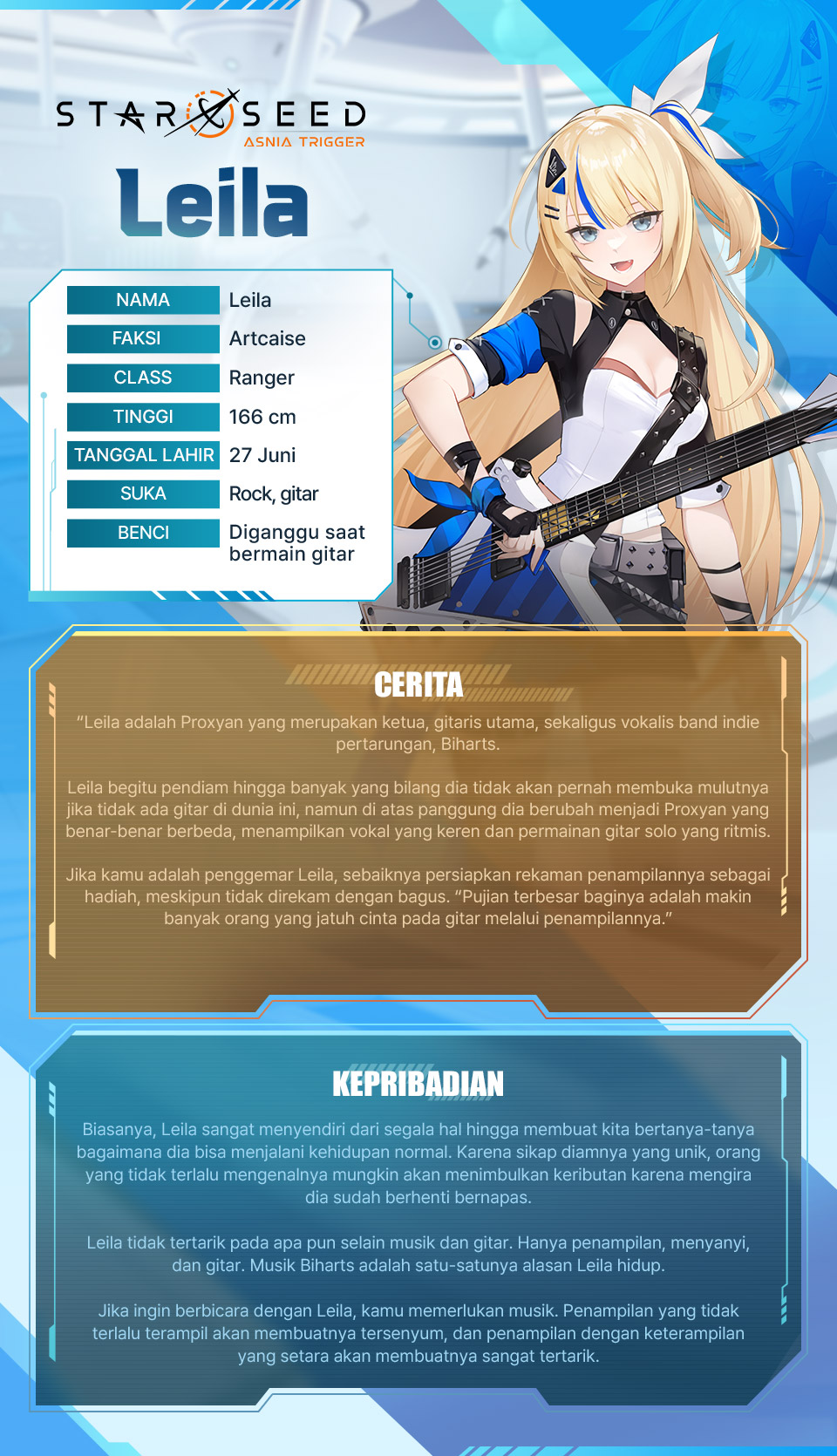 Leila adalah pemimpin, sekaligus gitaris utama, dan vokalis dari band indie, Biharts.
