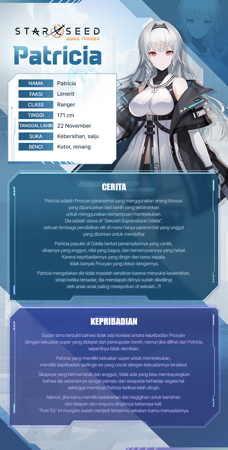 Kali ini, kami akan memperkenalkan Patricia, siswi di "Sekolah Supranatural Odelia".