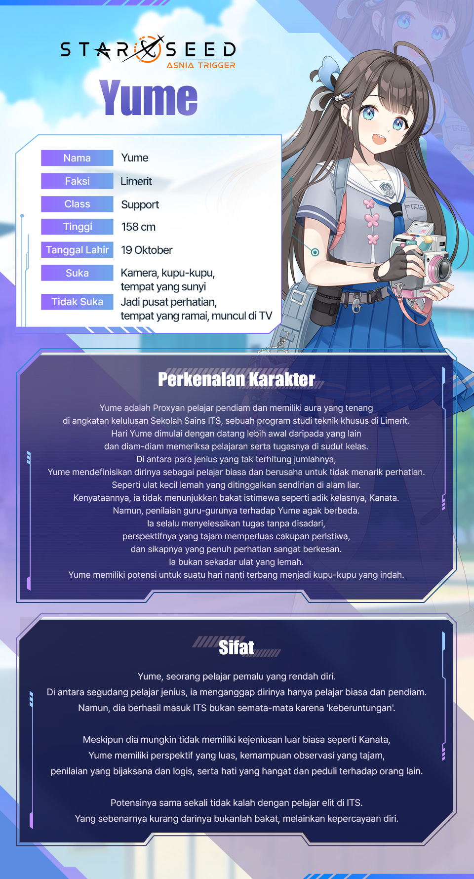 Perkenalkan Yume, murid kelas akhir dari ITS Academy, sekolah teknik khusus di Limerit.
