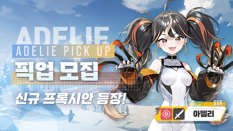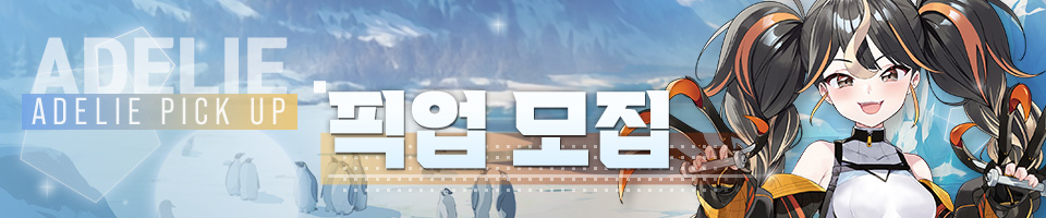 - 이벤트 기간 동안 ‘아델리’를 높은 확률로 획득 할 수 있는 픽업 모집이 진행됩니다.