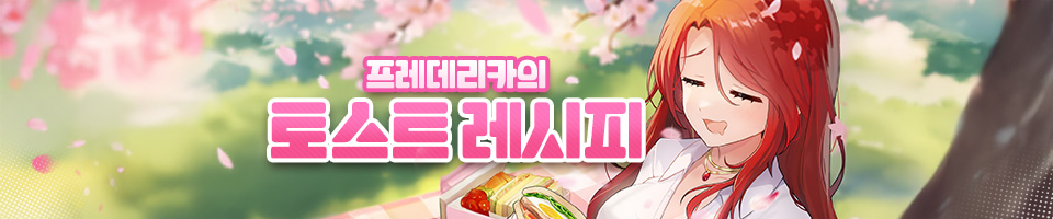 준비된 미션을 완료하여 얻을 수 있는 아이템을 이용해 다양한 보상을 받을 수 있는 프레데리카의 토스트 레시피 이벤트가 진행됩니다.