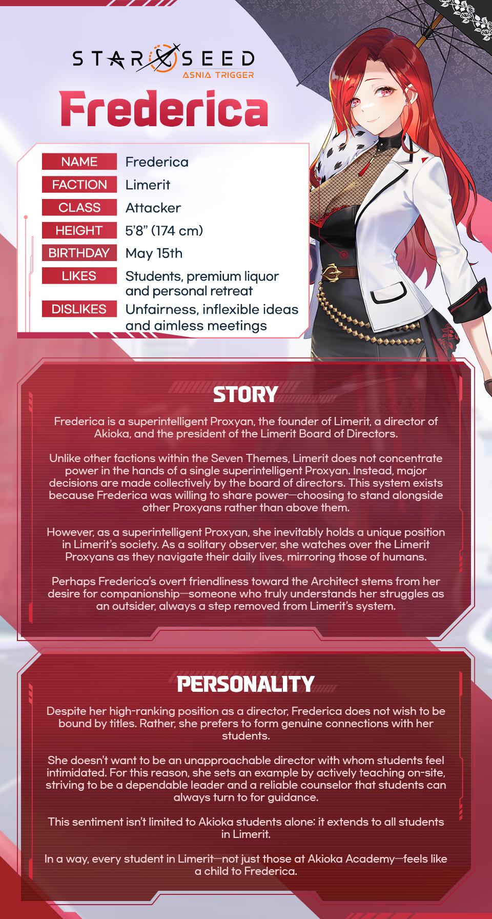 프레데리카는 높은 직위에 얽매이지 않고 다른 프록시안과 동등한 위치에 서기를 원합니다. (⊙o⊙)